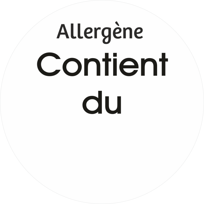 Notre adhésif allergène - NEUTRE - noir fond blanc, destiné, à un écriture manuelle, est imprimé, puis pelliculé, pour une protection optimale, et... un Entretien efficace et rapide...