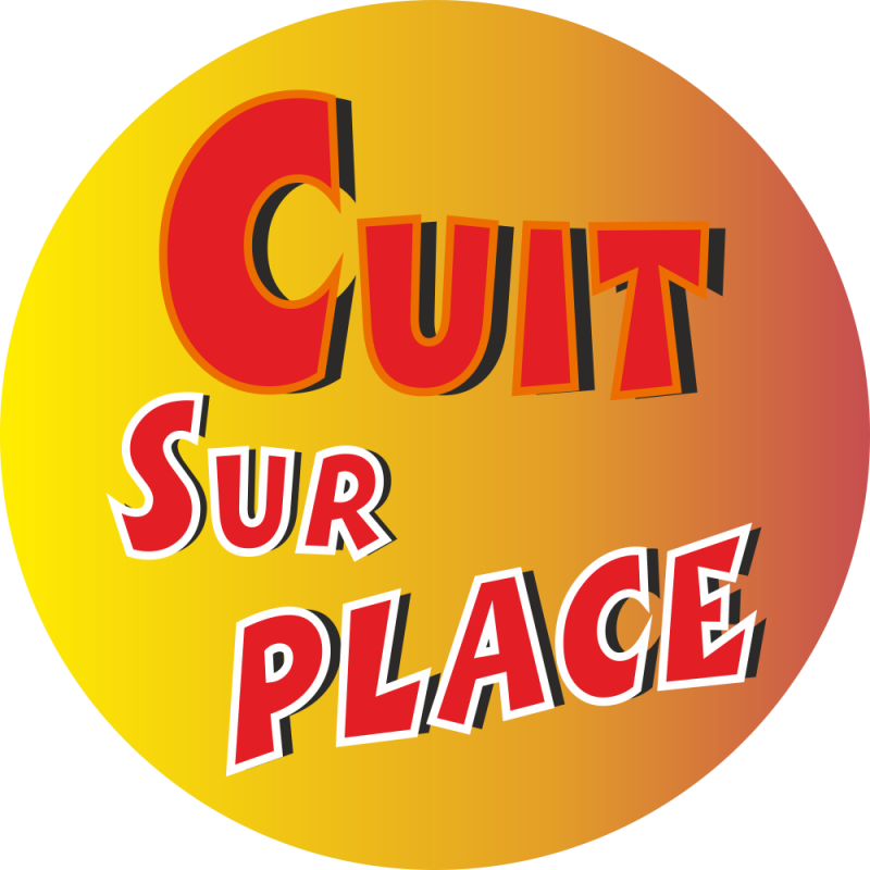 Notre adhésif Conseil Clientèle Cuisiné sur Place fond dégradé jaune, est imprimé, puis pelliculé, pour une protection optimale, et... un Entretien efficace et rapide...