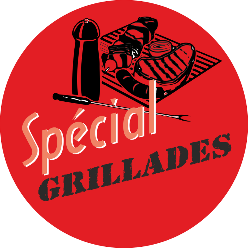 Notre adhésif Conseil Clientèle Spécial GRILLADES fond rouge, est imprimé, puis pelliculé, pour une protection optimale, et... un Entretien efficace et rapide...