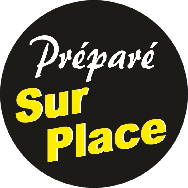 Notre adhésif Information Clientèle Préparé Sur Place fond noir, est imprimé, puis pelliculé, pour une protection optimale, et... un Entretien efficace et rapide...