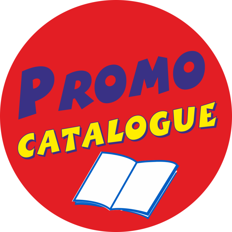 Notre adhésif PROMO (Bleu) Catalogue (Jaune) fond Rouge, est imprimé, puis pelliculé, pour une protection optimale, et... un Entretien efficace et rapide...
