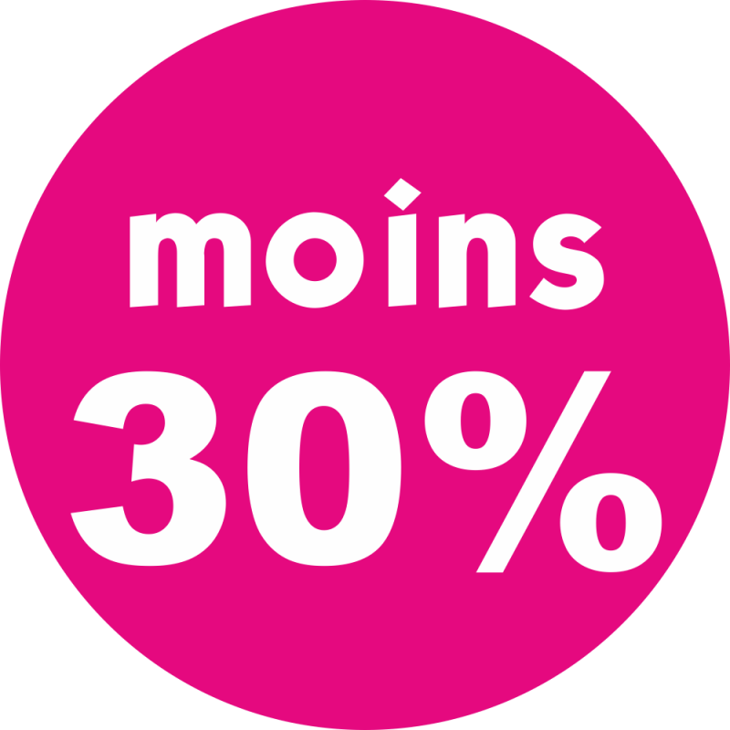 Notre adhésif Remise moins 30% fond magenta, est imprimé, puis pelliculé, pour une protection optimale, et... un Entretien efficace et rapide...